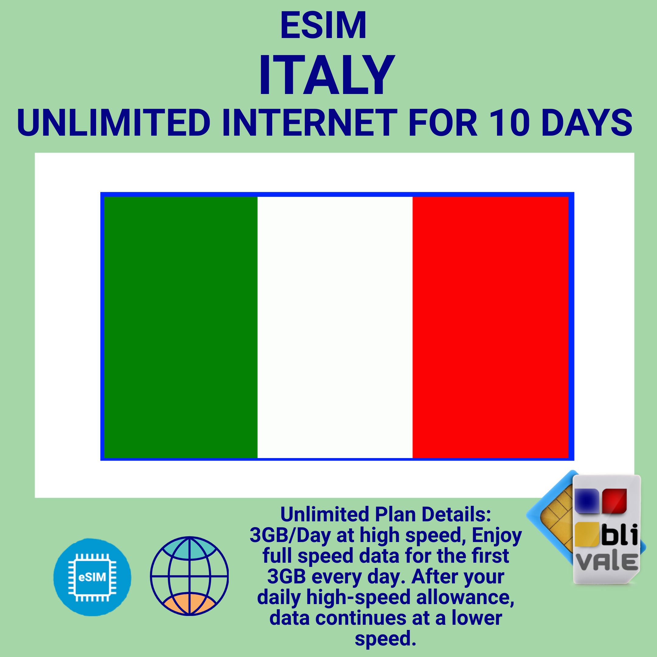 Get connected instantly across Italy with our Premium 4G/5G eSIM . Browse worry-free on GP networks with instant activation and no paperwork required.