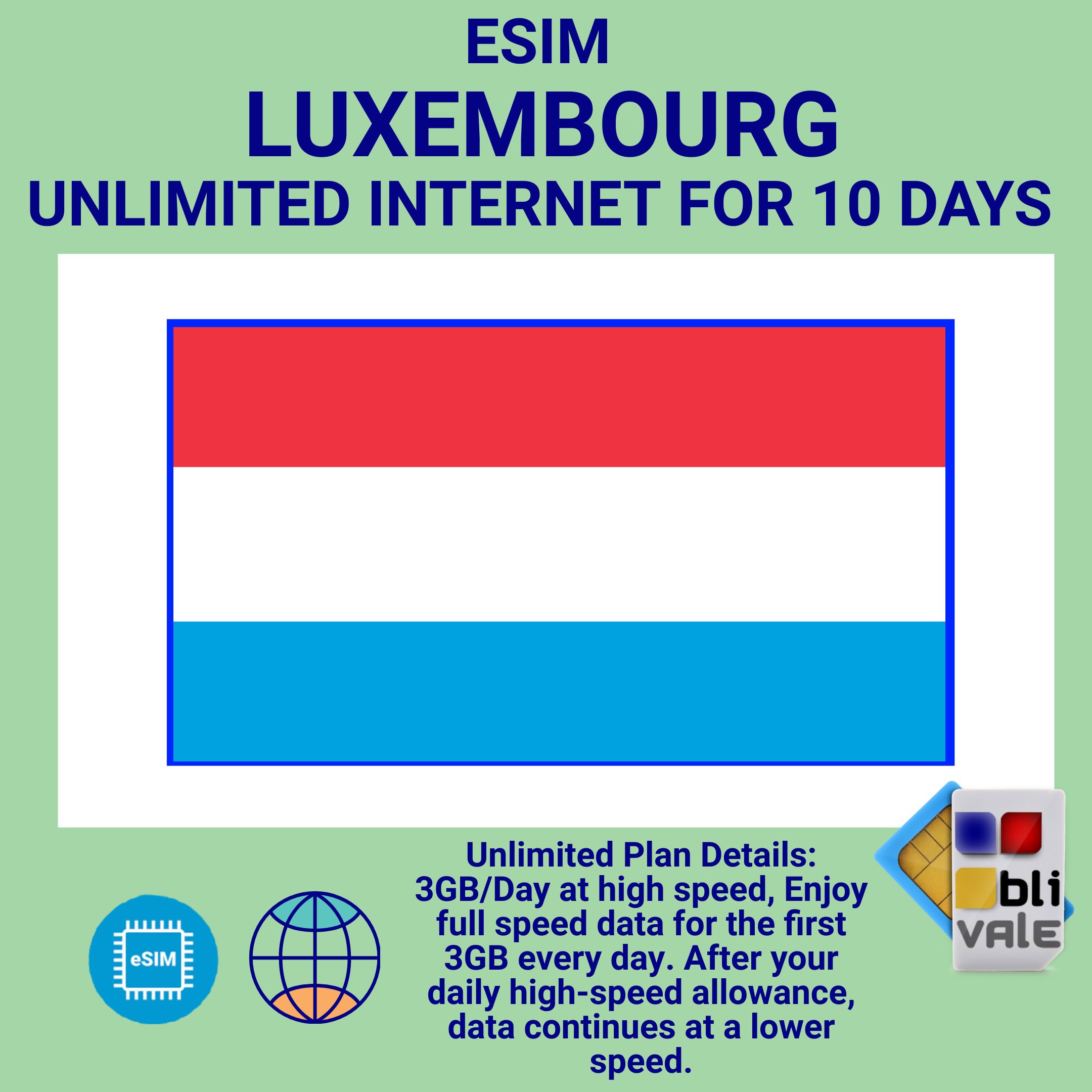 eSIM for Luxembourg Unlimited 10 Days (LU) BLVNLESIMLUUNL10D