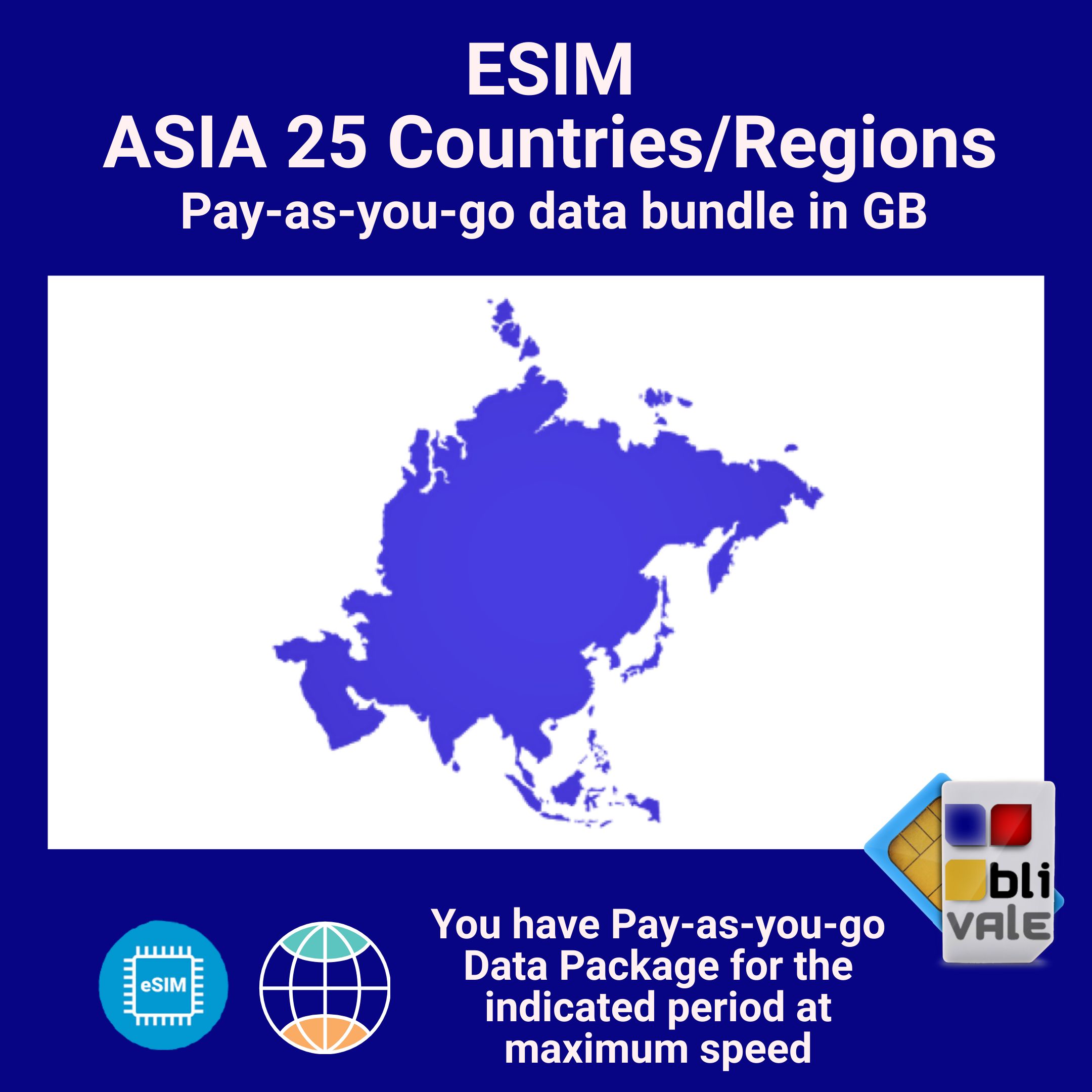 Buy a eSIM for ASIA 25 COUNTRIES/REGIONS Data package at maximum speed every day.