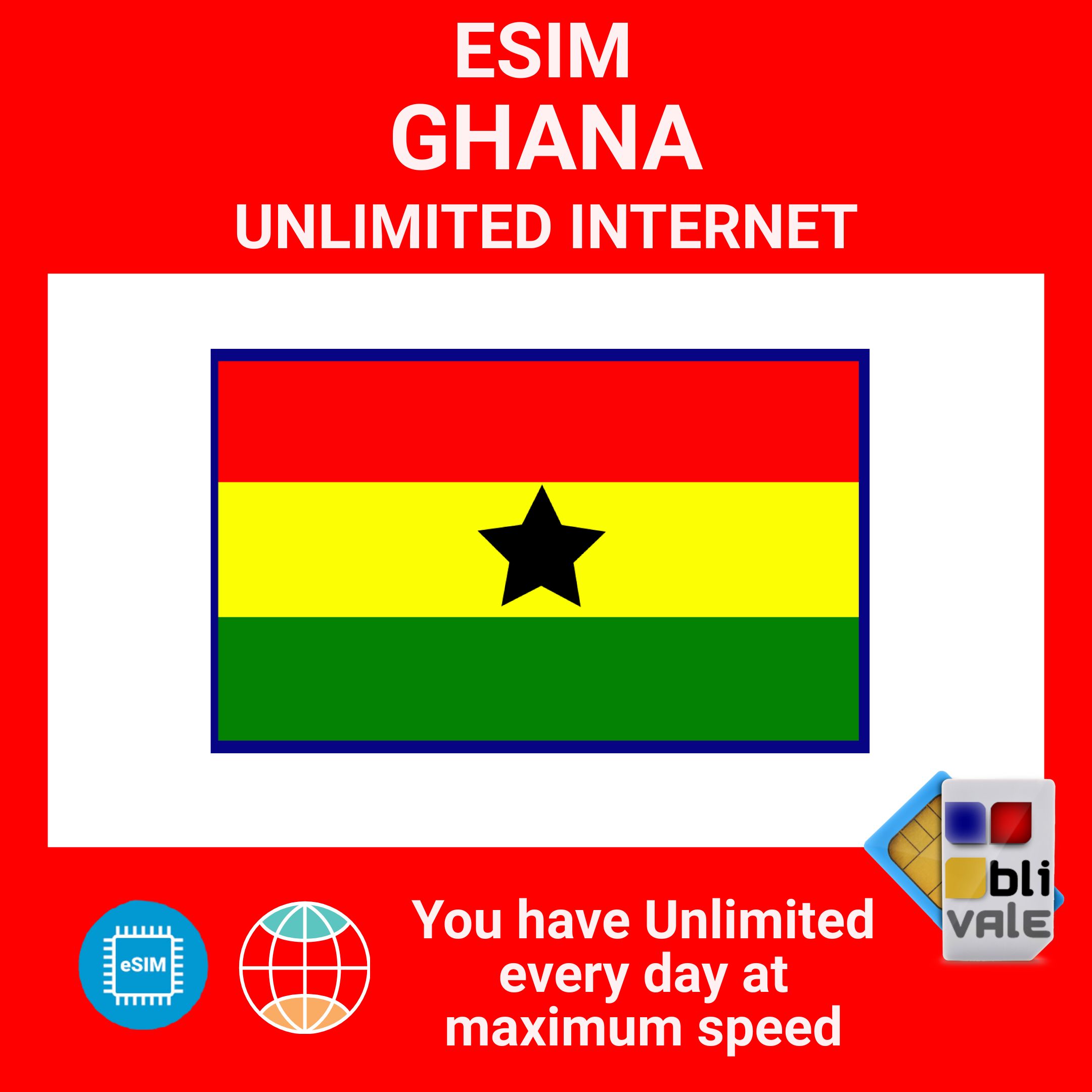 Buy a GHANA eSIM and enjoy Unlimited connection.